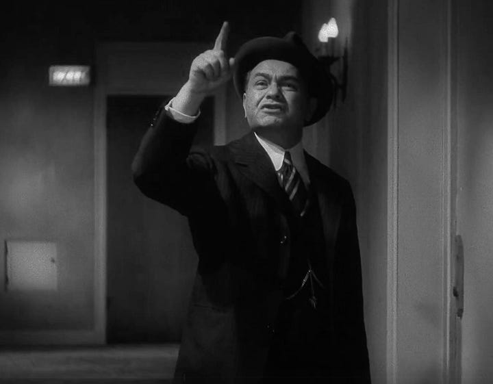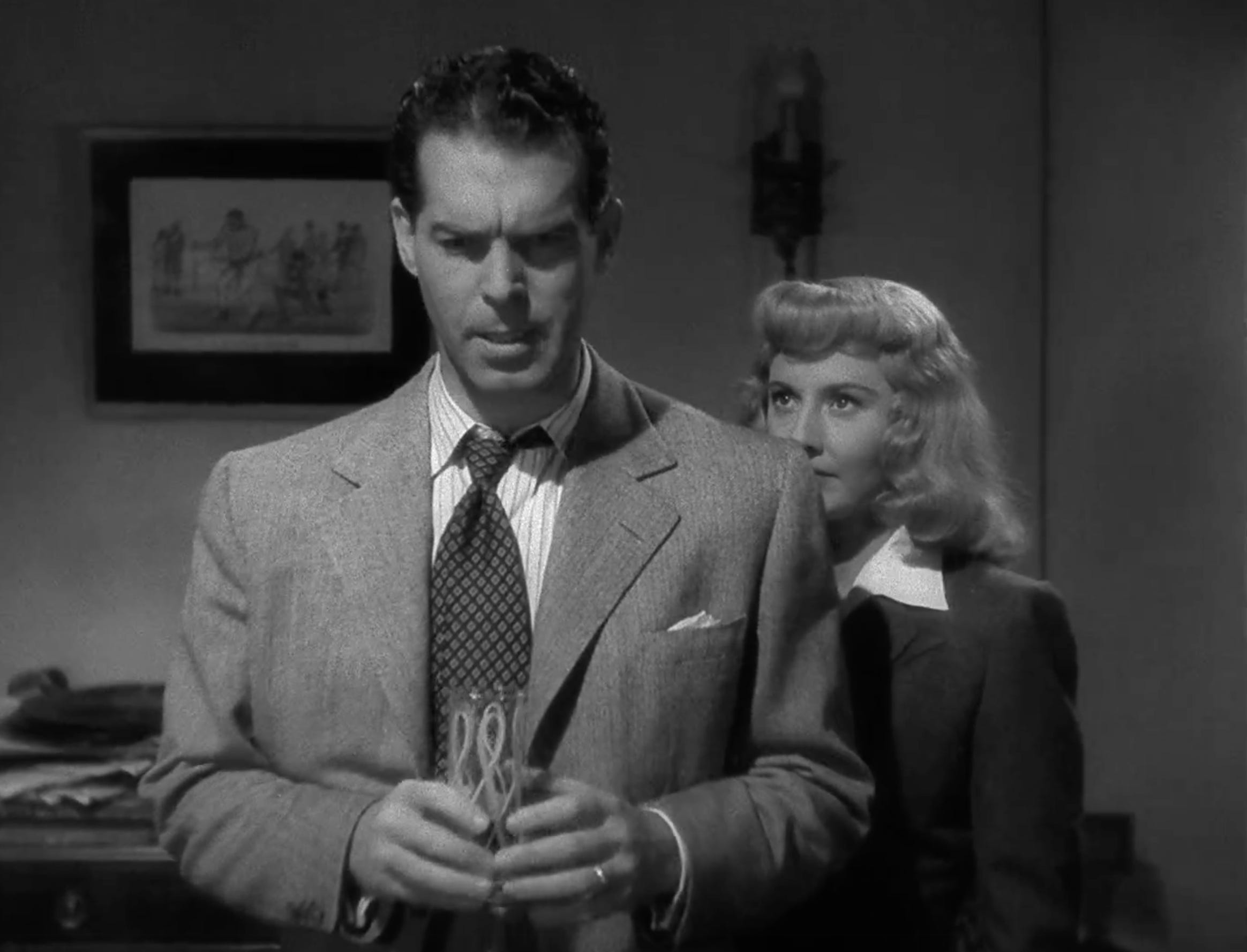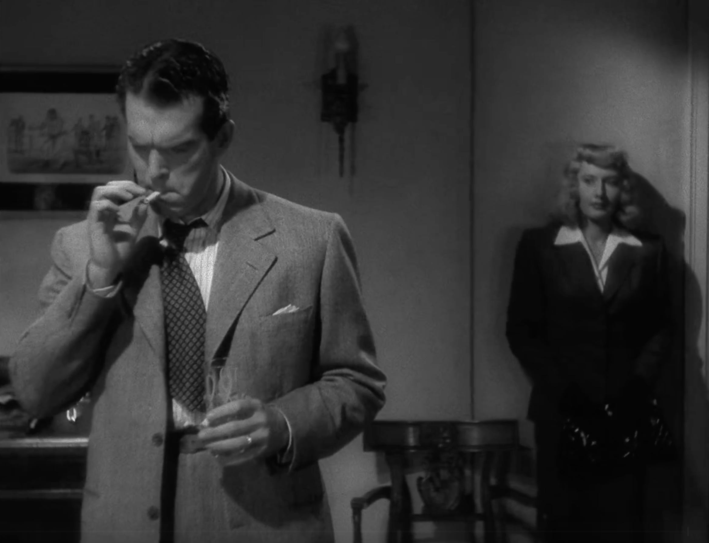 This is not only practical for the film so we can see both their faces, it is symbolic because she has a clear shot of his back and is about to (figuratively) backstab him, and finally it is capital D Dramatic because look at Phyllis’s face conveying pure intensity, and look how the pools of light catch Barbara Stanwyck as she moves (really best in video, but the photos do some justice).