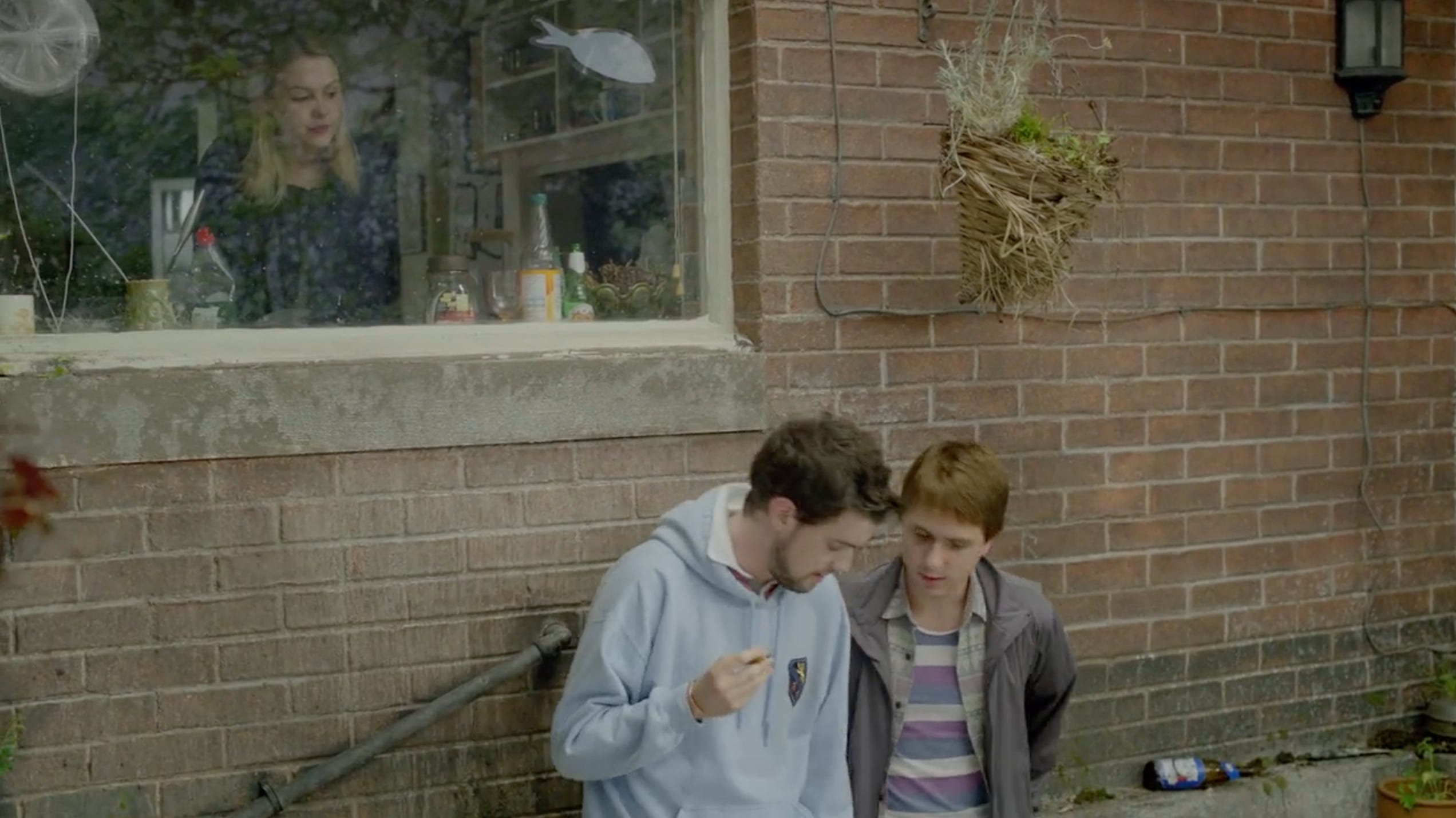 Most of the next shots are of Kingston and JP close together, and leading eyes important; it’s been established where the window (and thus Josie) are in relation to the boys, so when Kingston looks up (1:09), we know he’s trying to suss whether Josie can hear what’s happening.