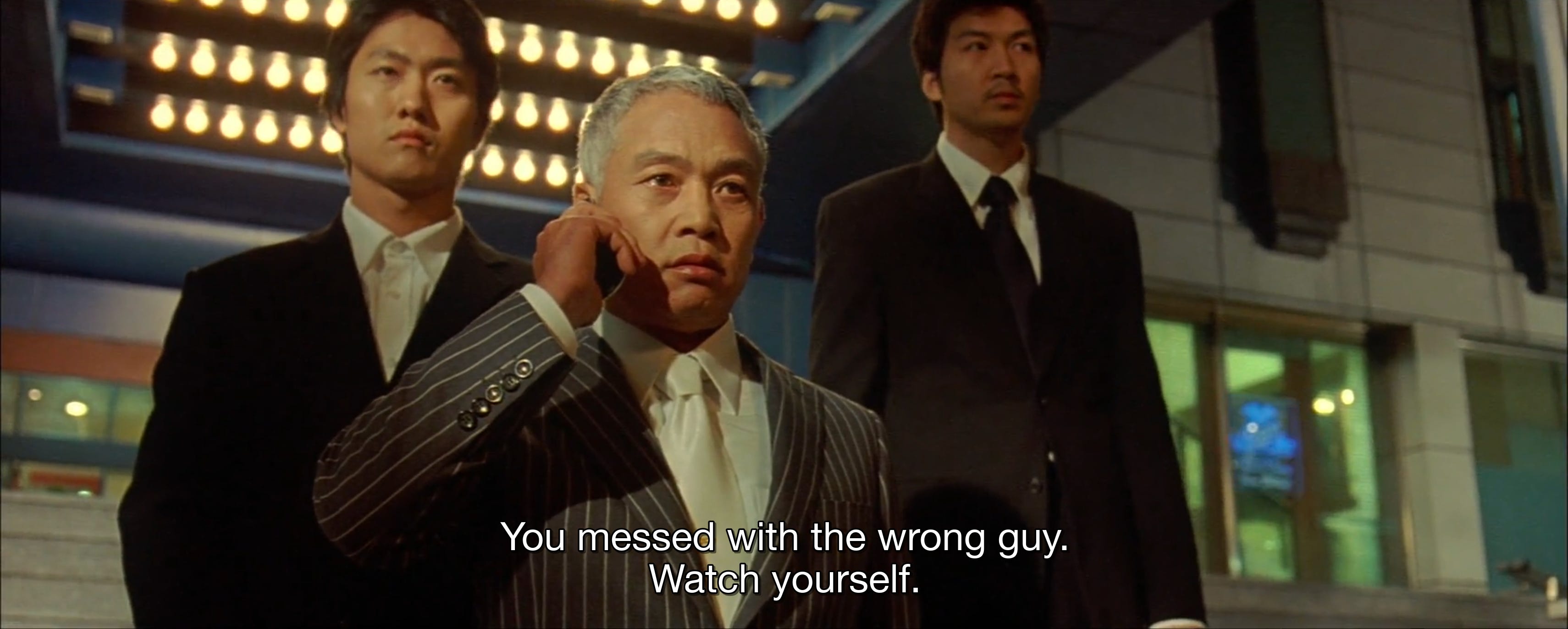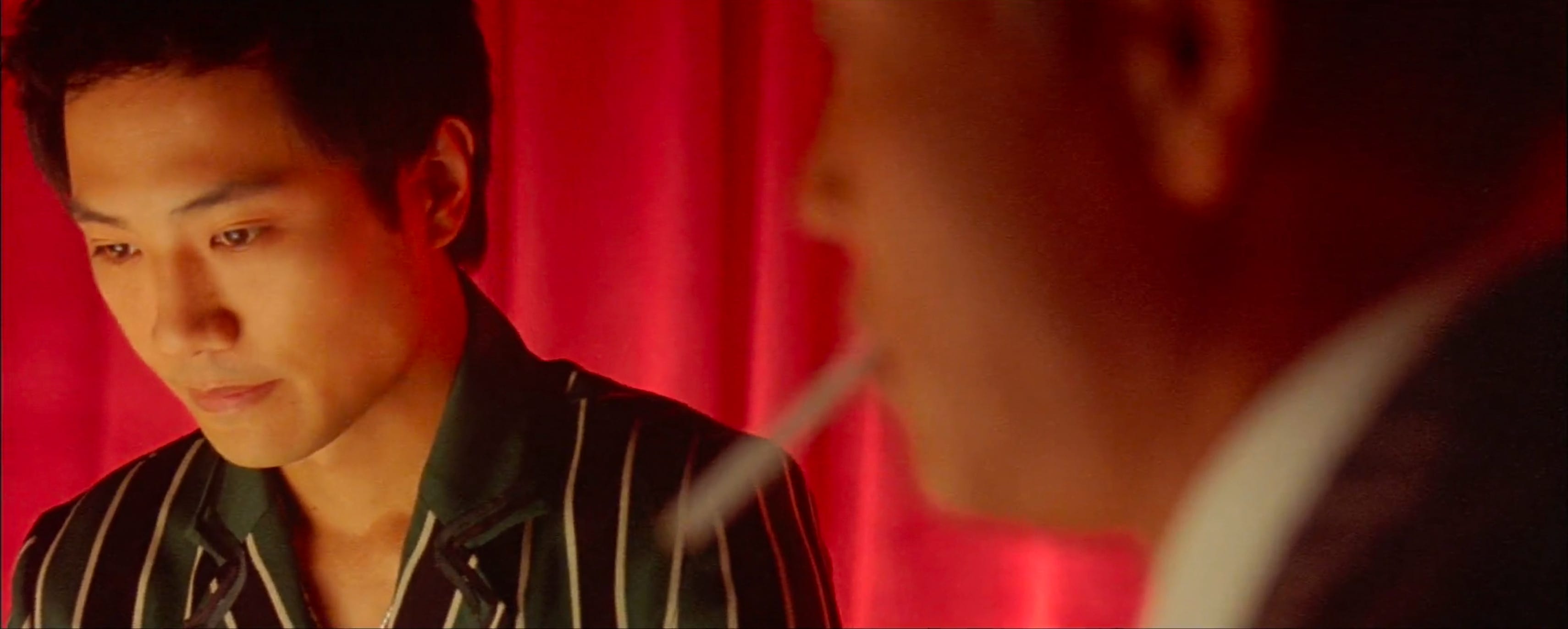 Sun-woo (Lee Byung-hun) absentmindedly flicks his floor lamp off, on, off, on, lulling himself and us into a hypnotic state until BAM! thugs appear, and their fight runs through light, dark, light, dark of the lamp being broken . . .