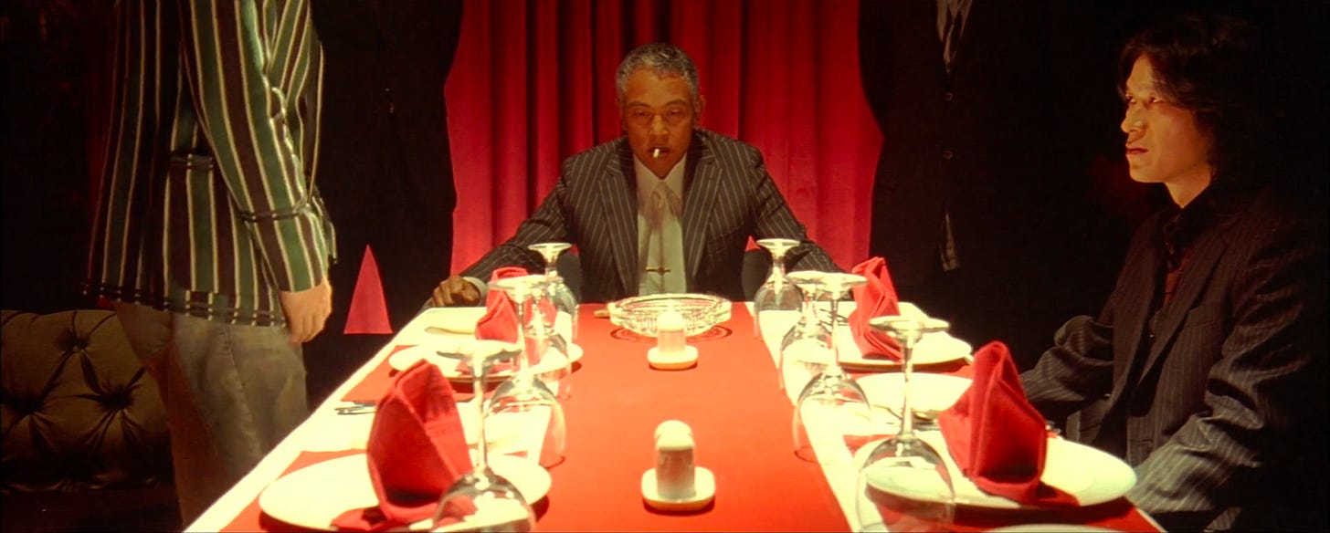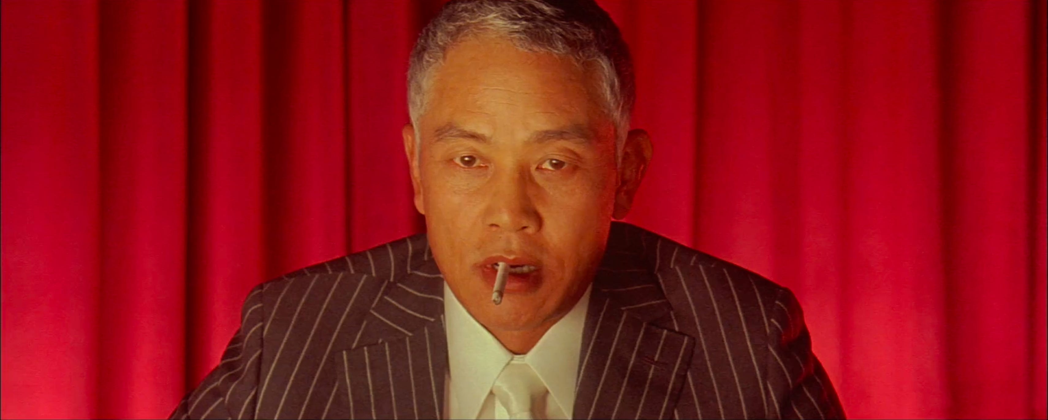 The way henchmen flank Mr Kang is great, serving as a ‘frame within frame’ as their black suits create more shadows which — along with the lighting clearly picking out Kang — really help set him apart from the background and give added ominousness.