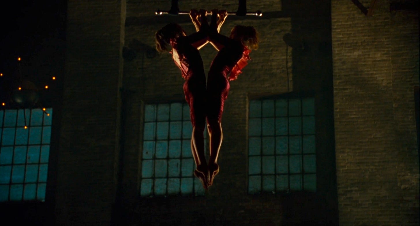 a circus performer and a mythology professor in a liminal space