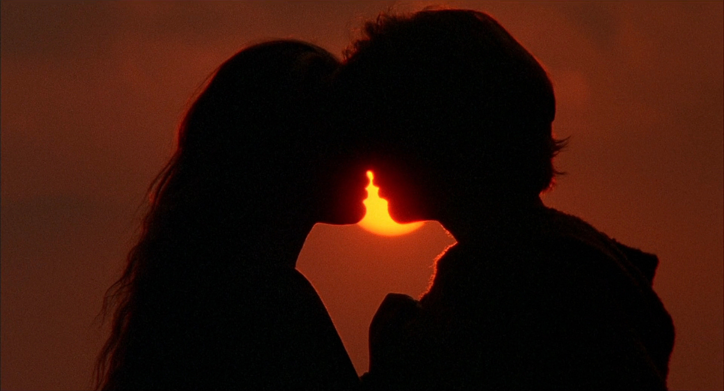 Every Valentines Day we yearn for shots of characters who form heart shapes — whether by kissing, protecting, sleeping, or whirling through the cosmos trying to save each others’ eternal soul.