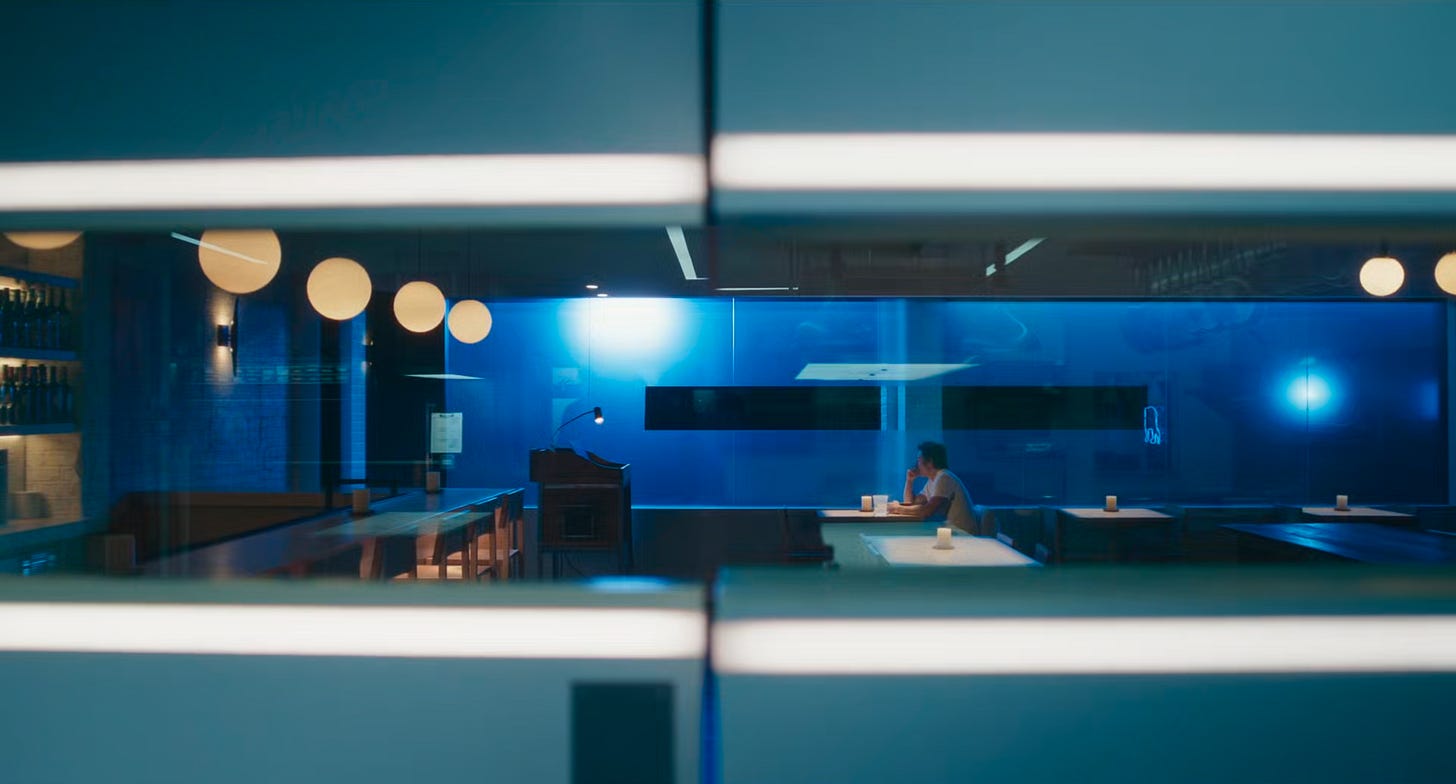 Utterly gorgeous and tense use of stark lighting minimalistic blocking in this short shot!