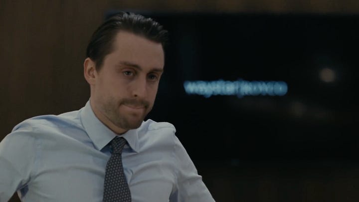 In fact, Succession crosses the line shooting as often as the characters cross moral lines, and just as often for kicks — as in this scene from 1.04 "Sad Sack Wasp Trap."