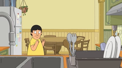 Even as Gene gets increasingly more frenetic, these first three shots make quite clear he: sees something (reaction shot), sees a bunch of silverware (him in frame with the kitchen utensils in the foreground), then gets an idea (POV shot of the utensils).