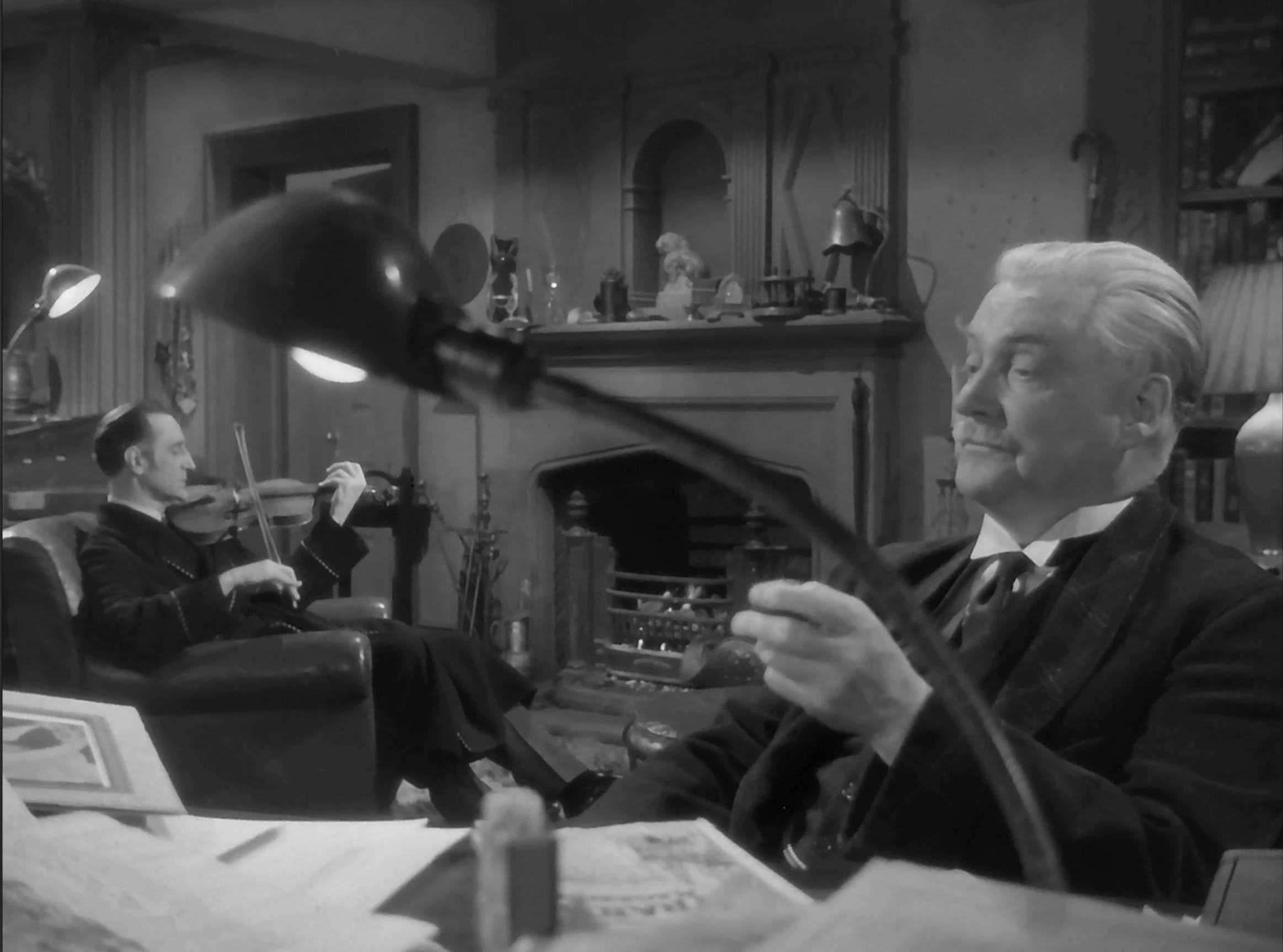 Sherlock and Watson are a bit at odds in this scene, and the framing shows us as much as their conversation tells us