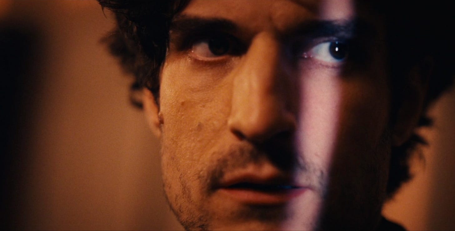 When Abel (Louis Garrel) finds a gun in his mom’s boyfriend’s jacket, he leans over to try to get a look at his mom and her boyfriend . . .