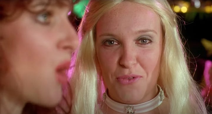 There’s also a shot-reverse-shot version as seen in Muriel’s Wedding (photos 3 and 4) which is specifically riffing on ABBA’s music video for “Knowing Me, Knowing You” (photos 5, 6, and 7), as is Sharon Van Etten & Angel Olsen’s “Like I Used To” music video (photos 8 and 9).
