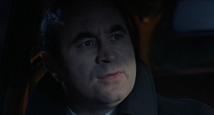 This scene inside a car uses colour, shadows, and a frame-within-a-frame to emphasise how seperate and at-odds George (Bob Hoskins) and Simone (Cathy Tyson) are.