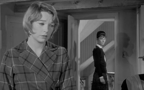 The Children’s Hour uses a split diopter twice in its near-two-hours, both scenes involving Karen (Audrey Hepburn) in very different ways.